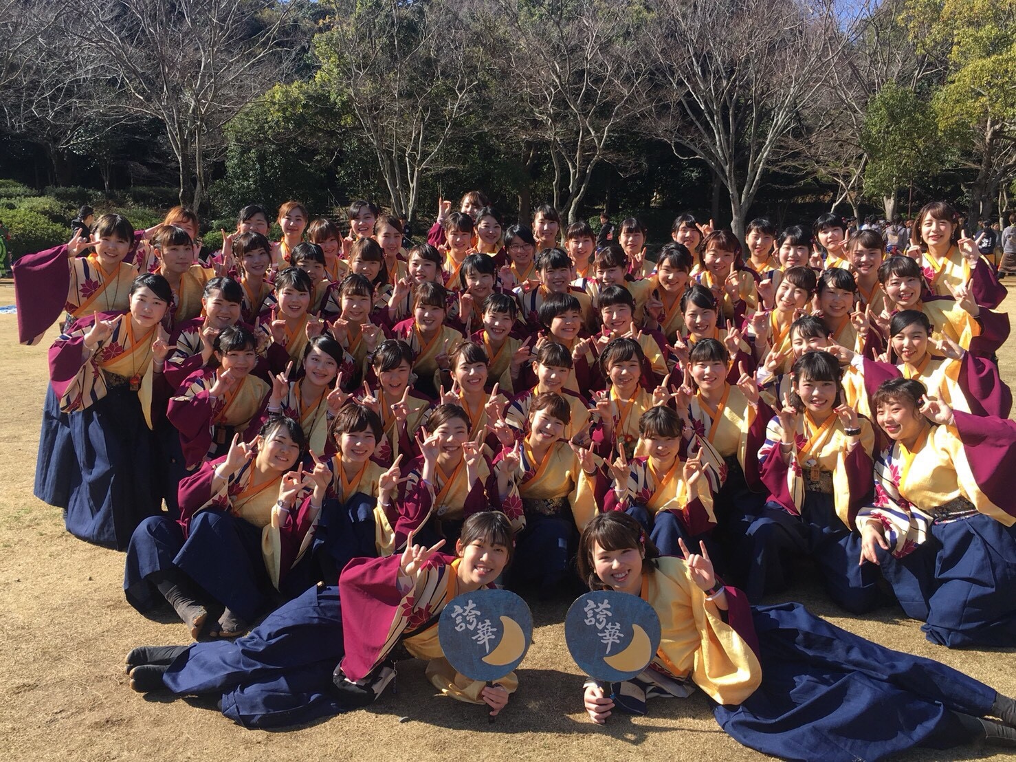 最初は雨の予報でしたが、ぽっそ娘のパワーもあってか、2日間ともとても天気が良く、楽しむことができました!また、誇華の旧振り納めであり15代目の先輩方の納めでもあったお祭りで弁天賞という素晴らしい賞をいただきました。一つ一つの演舞を大切にし、最後までぽっそ娘全員で笑顔で踊りきることができました。
