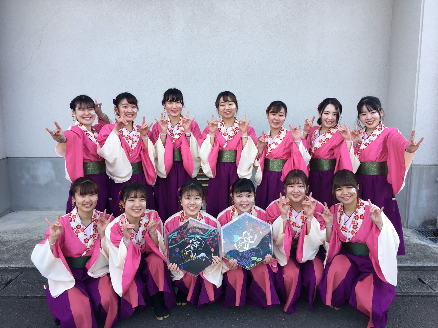 今回は2019年度の作品である華灯と、総踊りのシャケサンバ、うらじゃの2曲の計3曲を踊らさせていただきました!