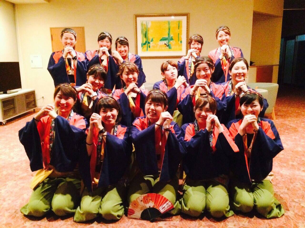 まず最初に私たちの今年の作品である燦華を踊り、次に総踊りを3つ!楽天、愛日本、うらじゃを踊りました!