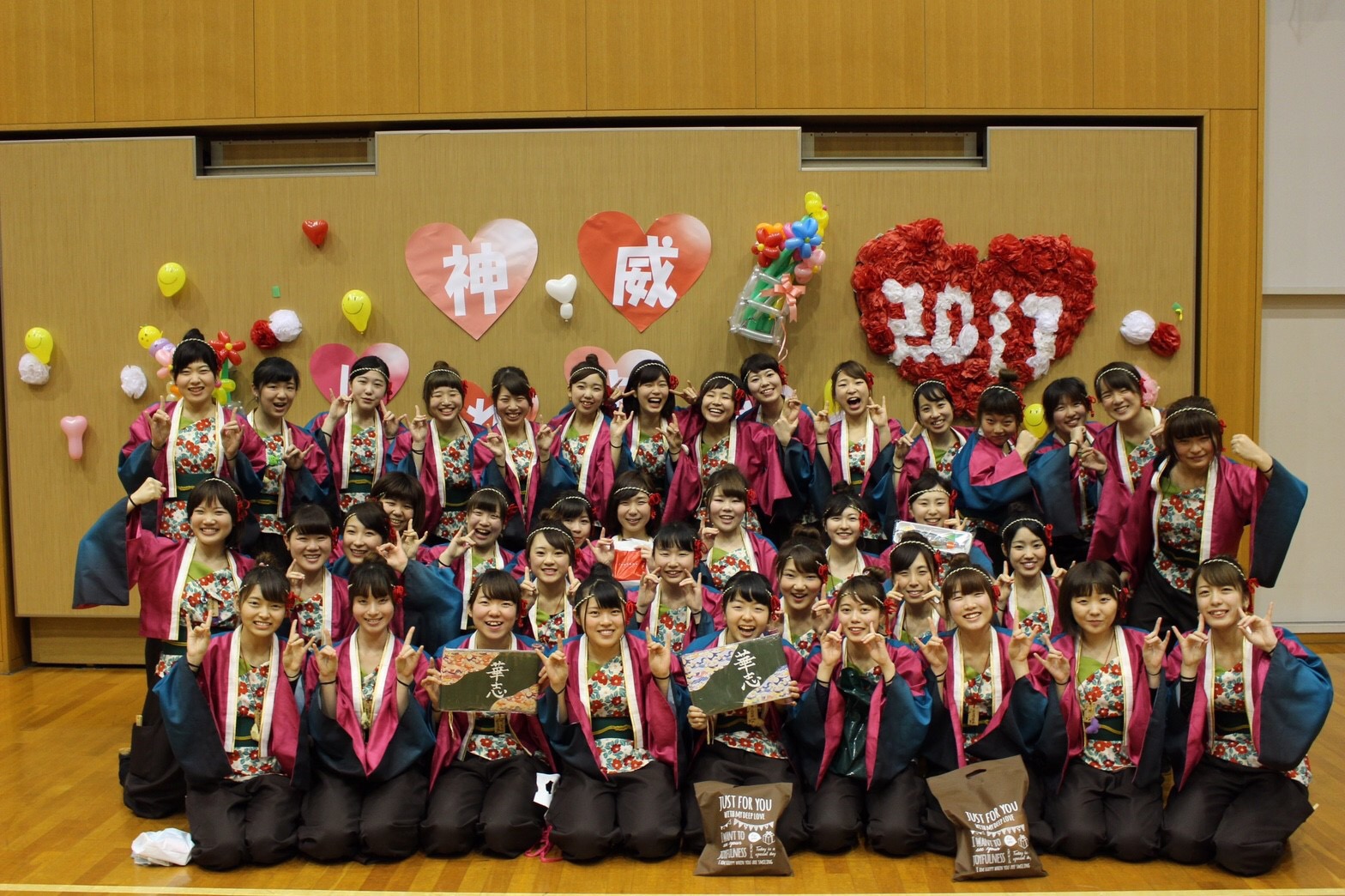 2月12日に太白区中央市民センターで行われたバレンタインよさこい、通称バレよさにぽっそ娘38人で参加してきました(^o^)