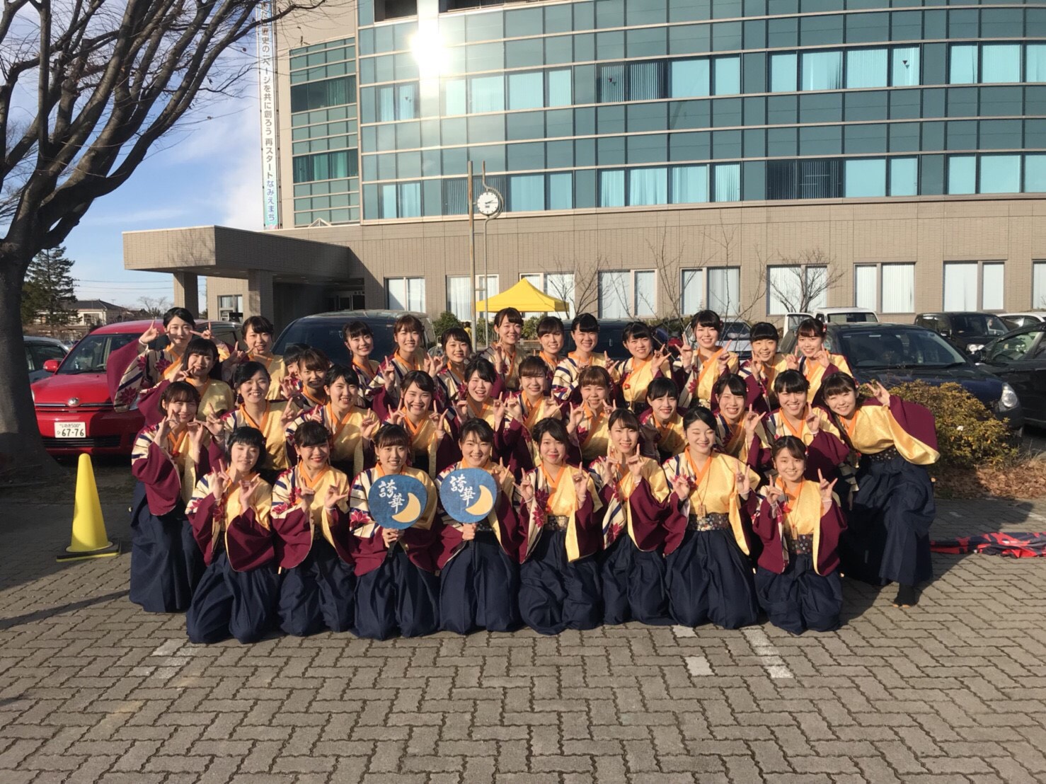 会場の温かい雰囲気のなか、地域の方のたくさんの声援もあり、とても楽しく踊ることができました!私たちの演舞で浪江町の復興の力に少しでもなれたら幸いです!ありがとうございました!