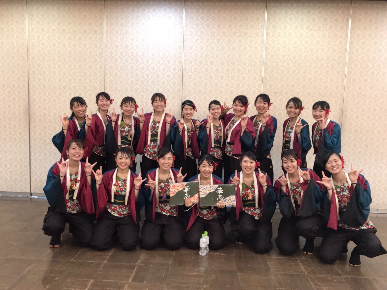 総踊りが終わり、続いてチーム演舞の「華志」を踊らさせていただきました!まさかまさかの演舞開始と同時に土砂降りになってしまい、一瞬にして足元が水浸しになりました。ですが、雨に濡れながらもカメラを撮り続けてくれださったお客さんや、少し離れたテントに避難してからも手拍子を送り続けてくださったお客さん、他チームの踊り子の皆さんの声援のおかげで、笑顔で踊り切ることができました(^_^)!