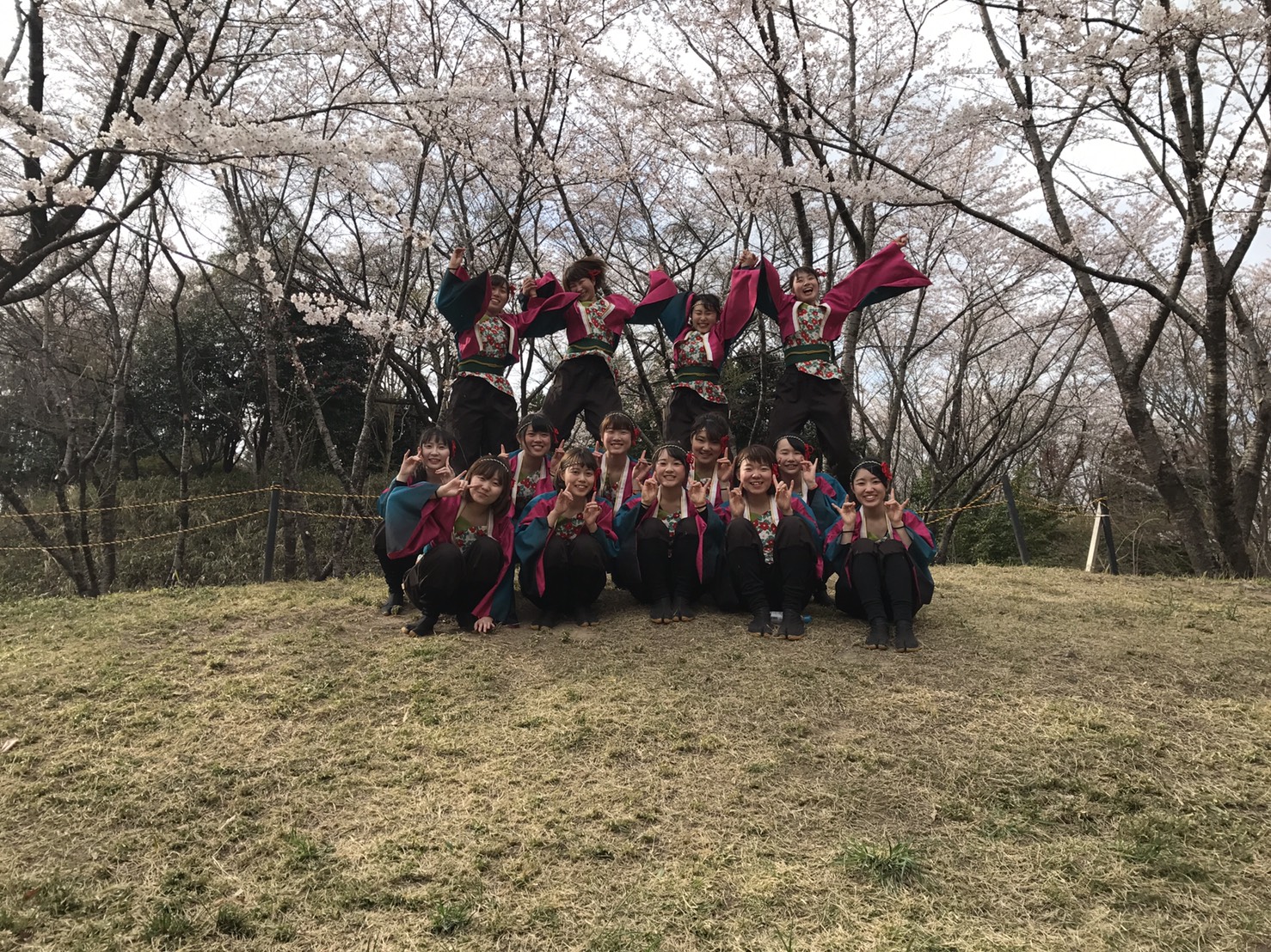 このお祭りは野外舞台でのイベントだったため満開の桜の木々にかこまれながらの演舞となりました(^O^)