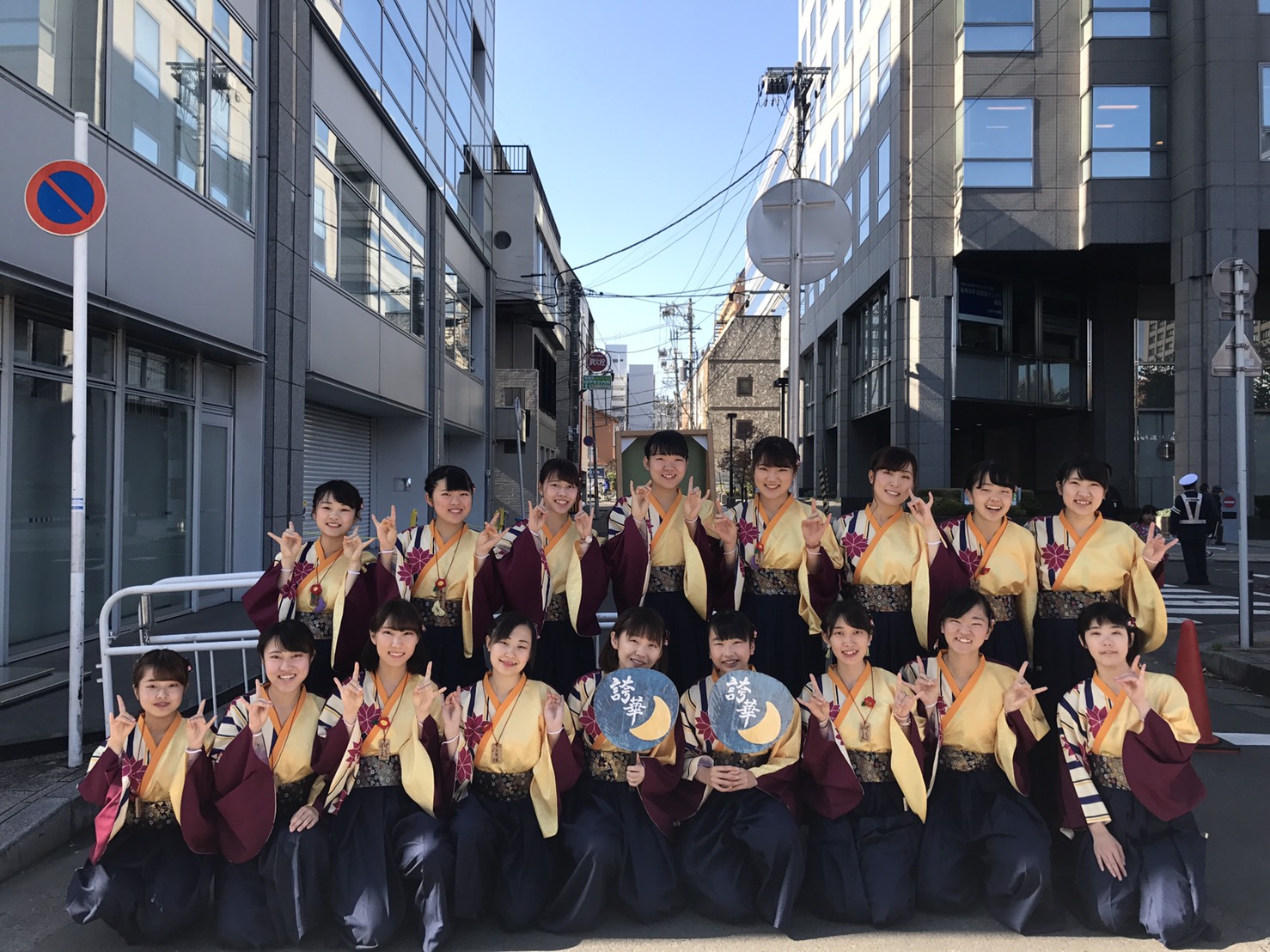 雲ひとつない晴天に恵まれ、朝からぽっそ娘の気合いも十分で「月が照らすは青葉区民〜♪」と元気よく誇華を踊りました!!