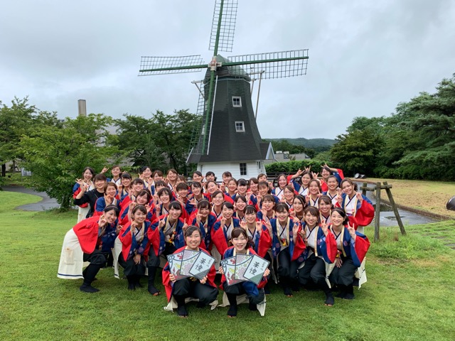 一発目の演舞、メイン会場ということもあり、演舞前は皆緊張している様子でした。しかし、演舞前にみんなで肩を組み円陣をすることでみんなの緊張を和らげぽっそ娘を感じながら演舞に臨むことが出来ました。
